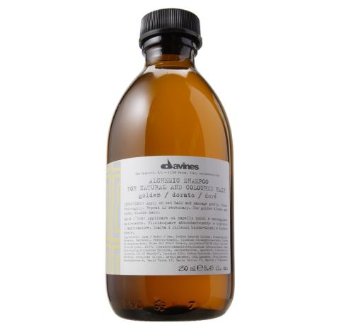 Szampon podkreślający kolor włosów – złotych i miodowych blondów. Szampon Alchemic Golden intensyfikuje i rozjaśnia naturalne lub kosmetyczne ciepłe odcienie blondów.