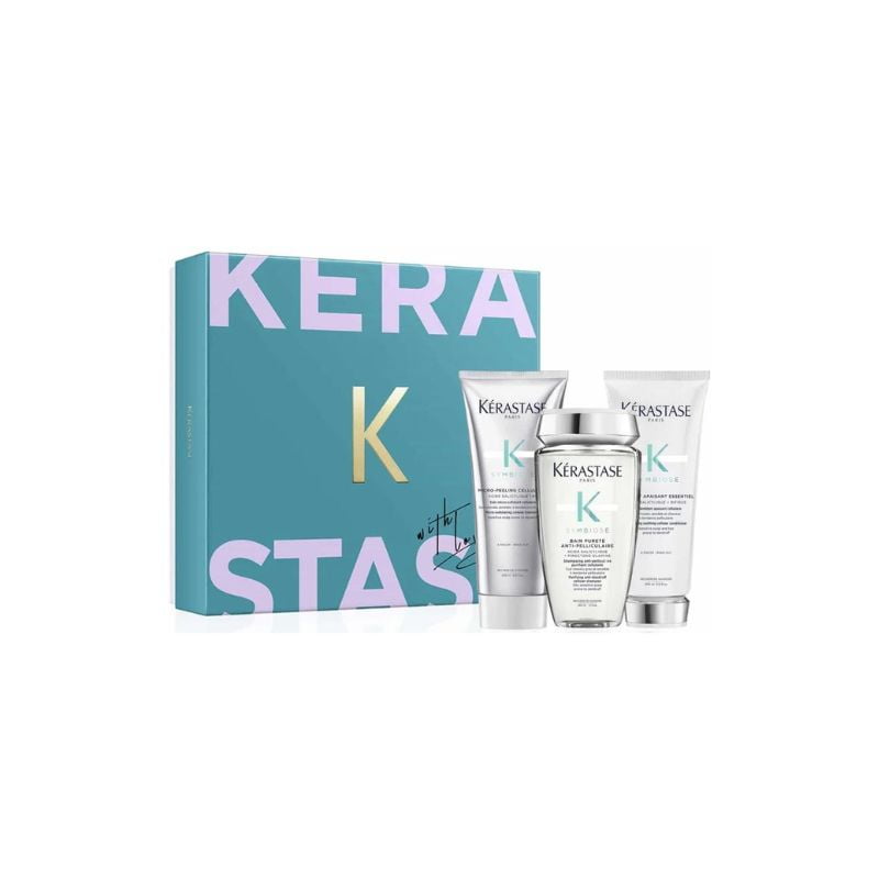 Zestaw prezentowy Symbiose zawiera Kąpiel Oczyszczajacą 250 ml, Kojącą Odżywkę 200 ml oraz Mikro-Peeling 200 ml.