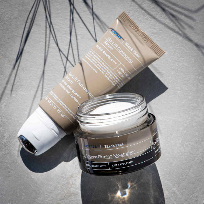 Udoskonalona linia KORRES Black Pine zawiera innowacyjną technologię 4D BIO-SHAPELIFT, która poprawia jędrność skóry, modeluje policzki, brodę i linię żuchwy. Składa się z peptydu z trzech aminokwasów i substancji morskiej. Tripeptyd naśladuje elafinę, hamując działanie progeryny, toksycznego białka związanego ze starzeniem się skóry. Substancja morska dodaje skórze energii, zapewniając lifting i ujędrnienie.