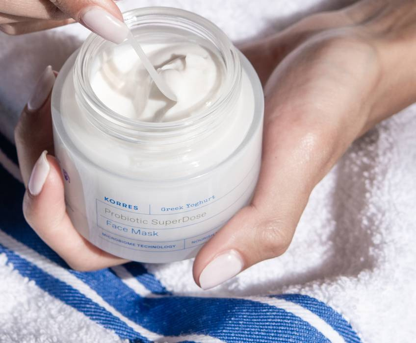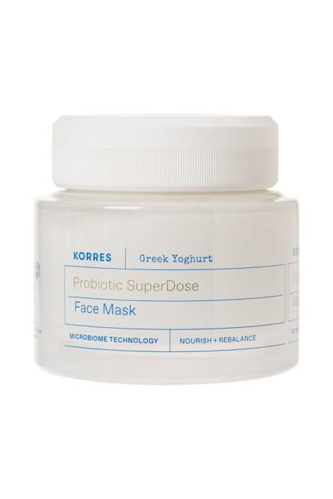 Maska do twarzy z greckim jogurtem od marki Korres to rewolucyjny produkt, który już po pierwszym zastosowaniu przynosi ulgę zestresowanej skórze. Grecki jogurt, bogaty w pre- i probiotyki, wspomaga odbudowę mikrobiomu skóry, podczas gdy woda morska i ekstrakty z alg przywracają jej równowagę. Korres Greek Yoghurt Probiotic SuperDose przeszedł testy dermatologiczne i nie zawiera sztucznego zapachu. Dzięki swojemu wygodnemu opakowaniu nadaje się do każdego rodzaju skóry. Uzyskanie uczucia ukojenia, odżywienia i komfortu to efekty, na które możesz liczyć już po pierwszym użyciu!