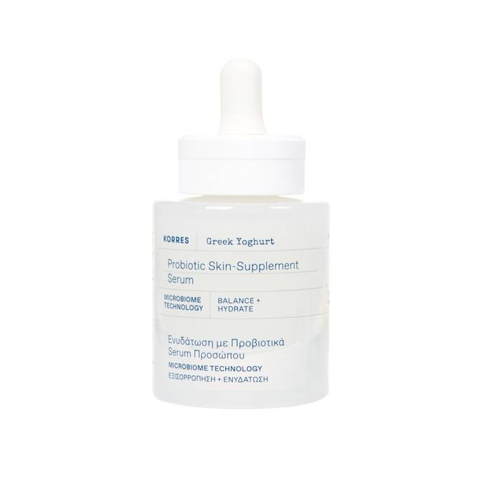 Korres Greek Yoghurt Serum działa intensywnie, wygładzając skórę, wzmacniając jej naturalną barierę ochronną i przywracając naturalny blask. To lekkie serum, wzbogacone o probiotyki, zapewnia aż 48-godzinne nawilżenie i ukojenie nawet najbardziej wysuszonej skórze.