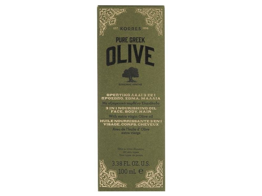 Korres Olive olejek nawilżający nadaje się do każdego typu cery i włosów. Kosmetyk jest zamknięty w solidnym opakowaniu o pojemności 100 ml.