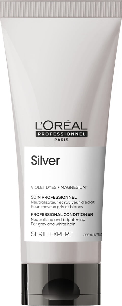 Martwisz się, że Twoje siwe lub rozjaśnione włosy żółkną i są niewłaściwie pielęgnowane? Kremowa odżywka Silver od L’Oréal Professionnel to pielęgnacja przeznaczona do włosów rozjaśnianych i siwych. Dzięki fioletowym i niebieskim pigmentom krem neutralizuje niepożądane żółte refleksy, a także nadaje włosom miękkości i blasku.