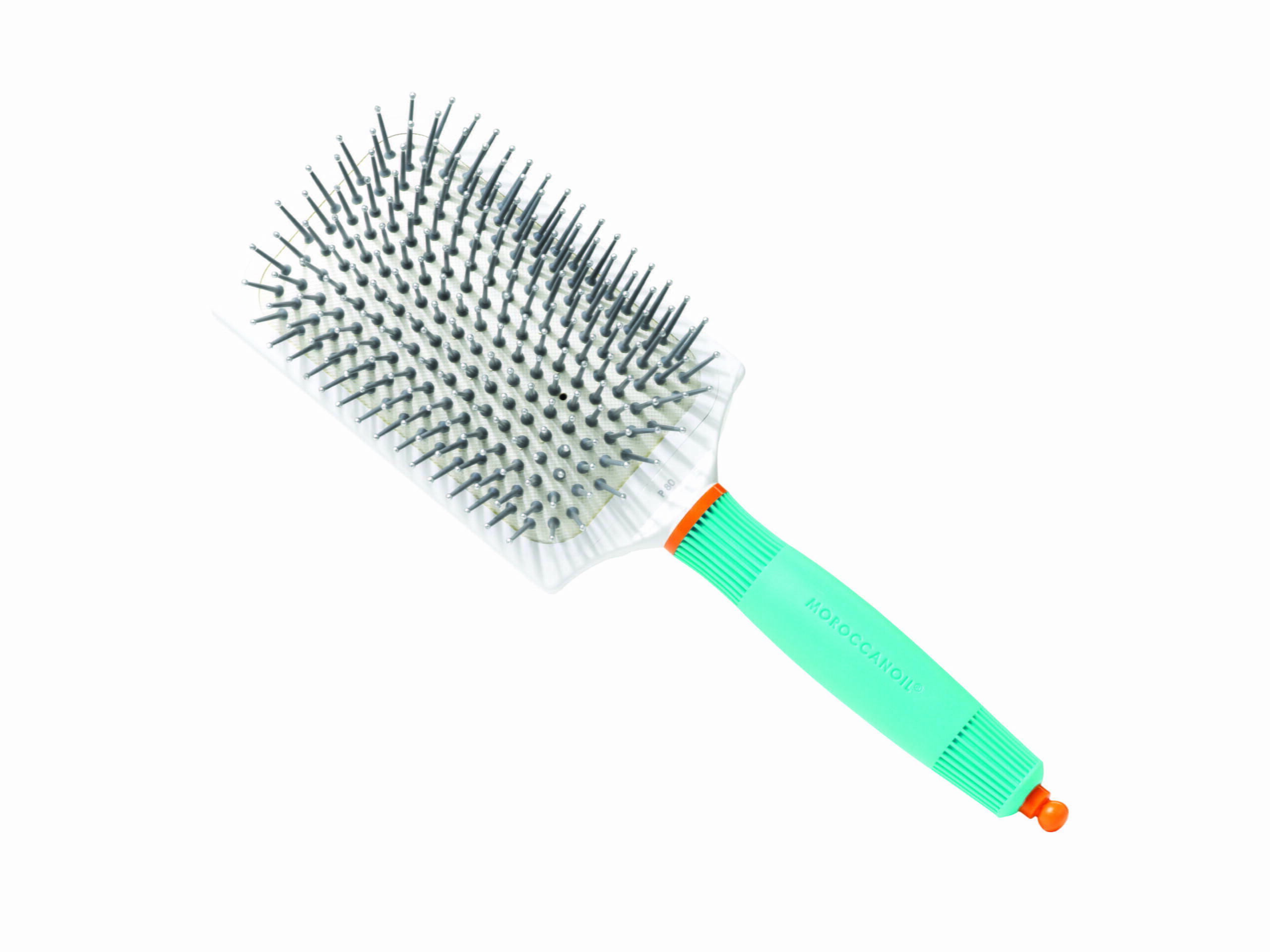 Ceramiczna płaska szczotka do włosów Moroccanoil Ceramic Paddle Brush to wysokiej jakości szczotka ceramiczna do stylizacji włosów o różnej długości. Jonizujące właściwości szczotek ceramicznych umożliwiają równomierne rozprowadzenie ciepła, skracają czas suszenia i nadają włosom połysk. Wyposażona w końcówkę do rozdzielania (przechowywaną w uchwycie) która ułatwia stylizację fryzur.