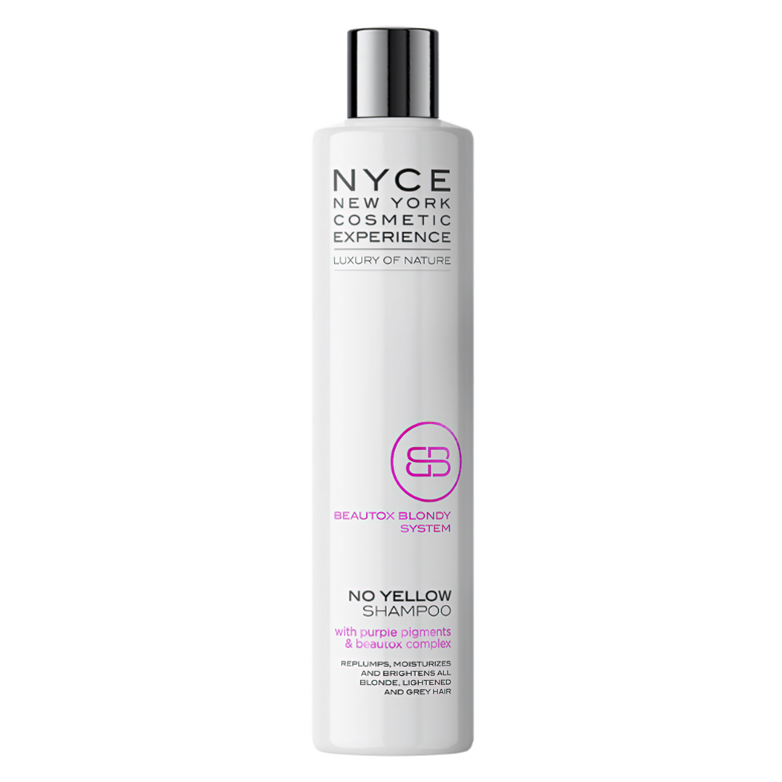Specjalistyczny szampon z fioletowymi pigmentami, który równoważy odcień blond i siwych włosów, eliminując niechciane ciepłe tony, a jednocześnie nie pozostawiając śladów na skórze.