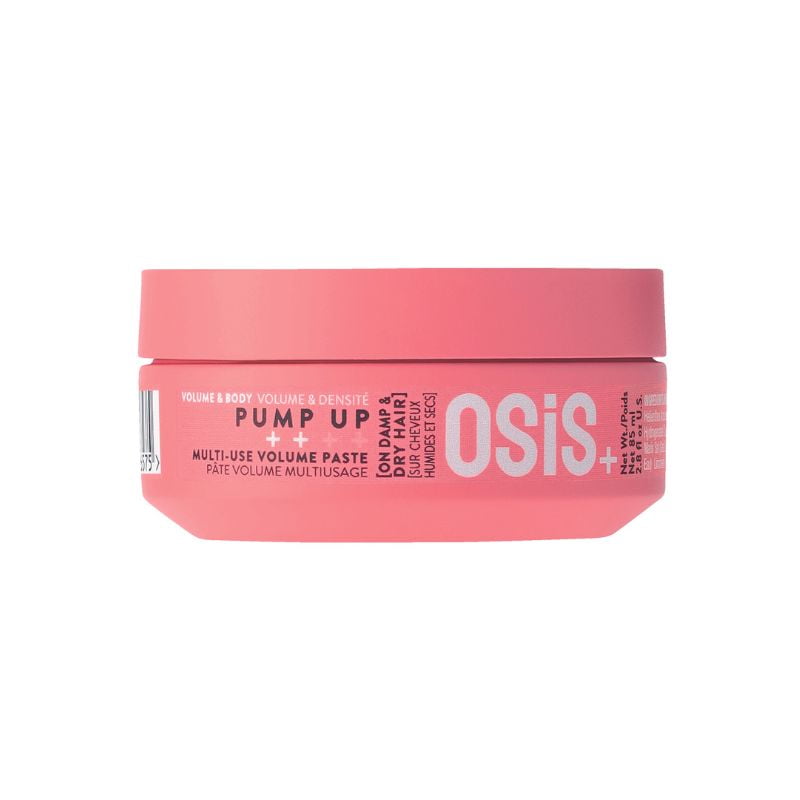 Osis+ Pump Up to wielofunkcyjna pasta nadająca objętość włosom. Stworzona została przy użyciu unikalnego połączenia skrobi, soli morskiej i olejków pochodzenia naturalnego. Kosmetyk można stosować na wilgotne, krótkie włosy przed suszeniem lub na na suche włosy dowolnej długości, aby nadać natychmiastowo teksturę, wypełnienie i uniesienie od nasady. Osis+ Pump Up zapewnia długotrwałą objętość i odbicie włosów od nasady oraz delikatne utrwalenie. Dodatkowo przeciwdziała puszeniu się włosów.