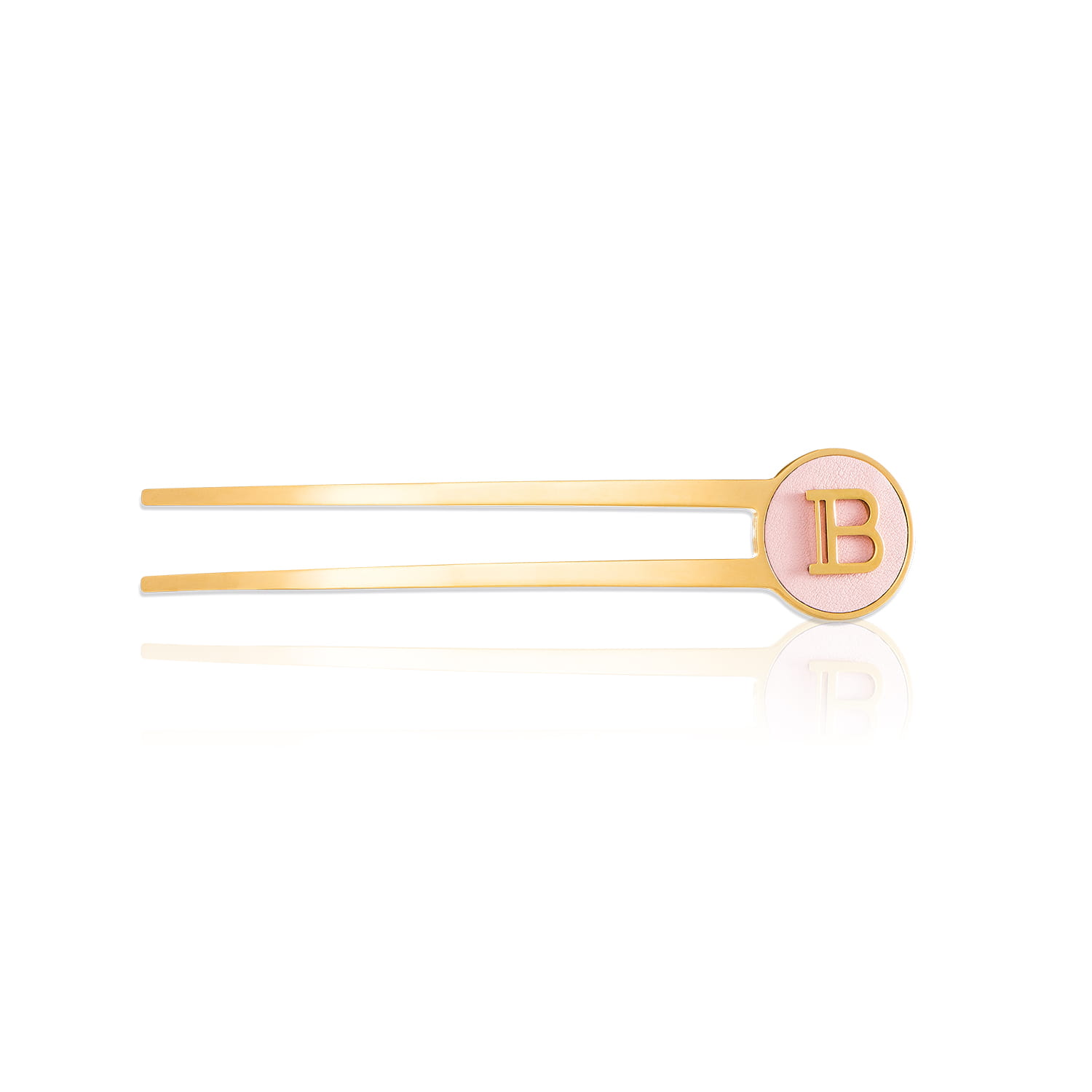 Pozłacana spinka-widelec z limitowanej edycji, zainspirowana kolekcją domu mody Balmain Paris na sezon Wiosna-Lato 2020. Nadaj swojej fryzurze najmodniejsze wykończenie. Różowy kolor spinki sprawia, że jest to idealna biżuteria do włosów latem!