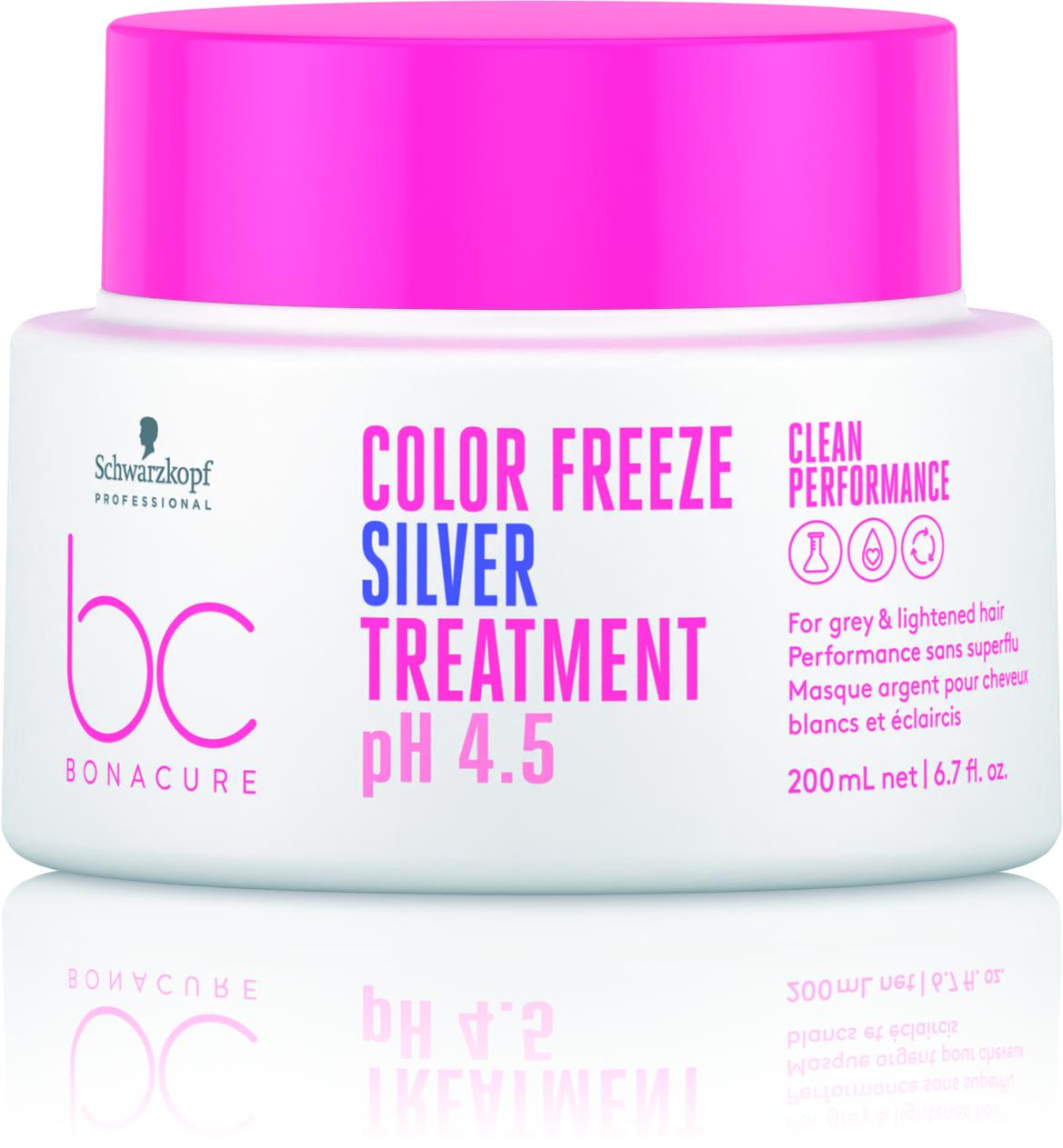 Bogata, intensywnie pielęgnująca emulsja z serii Color Freeze Silver  zawiera hydrolizowaną Keratynę, która  wypełnia luki strukturalne od zewnętrznej  warstwy włosa do kory. Technologia Równoważąca pH 4.5 napina strukturę włosa i zamyka pigmenty koloru w najgłębszych  warstwach włosa, poprawiając jednocześnie  wytrzymałość i elastyczność włosów  farbowanych. Włosy uzyskują optymalne pH  4.5; kolor jest tak żywy jak po wizycie w salonie i utrzymuje się aż do następnej.