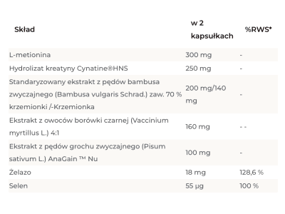 Suplement diety wzmacniający włosy, hamujący ich nadmierne wypadanie i odżywiający skórę głowy.