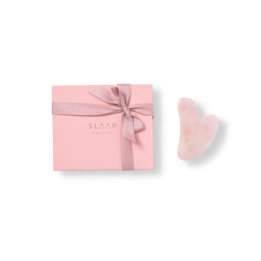 Kamień Gua Sha został wykonany z różowego kwarcu, przyjmując formę półksiężyca o gładkich brzegach, co umożliwia idealne dopasowanie do konturów twarzy. Delikatne, ale skoncentrowane naciskanie pomaga uwalniać napięcie z obszarów, gdzie gromadzi się codzienny stres i negatywna energia, takich jak skronie, mięśnie żuchwy czy obszar między brwiami. Dodatkowo, stymuluje przepływ limfy i pobudza krążenie krwi, co przyczynia się do poprawy dotlenienia skóry oraz zwiększenia jej jędrności.